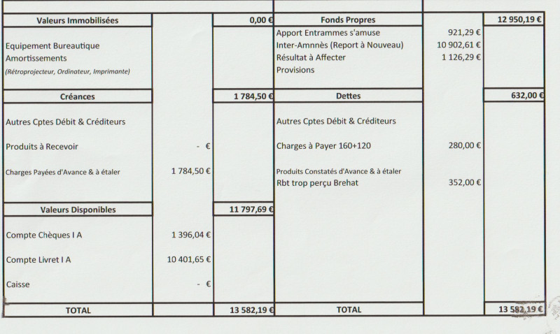 Bilan association au 31 octobre 2022