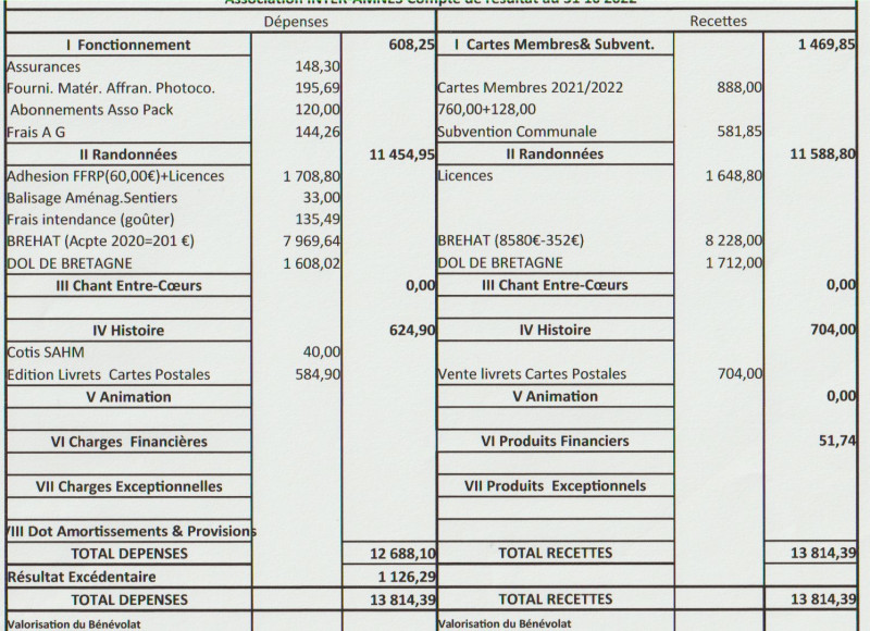 Veuillez trouver ci joint à cette page rattachée à la commission finance de l'association, les comptes de l'association interamnes pour l'année 2022. Cliquer sur les liens ci-dessous pour afficher les tableaux.